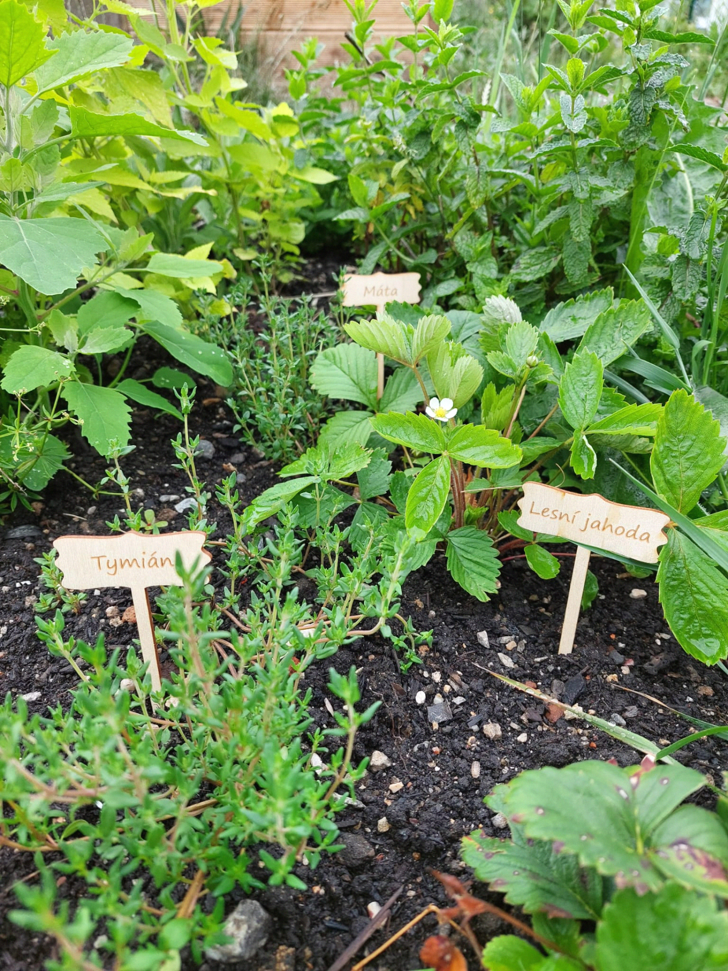 Naše zahrada je společné dílo všech. Zjara děti ve třídách pečují o sazeničky zeleniny, později rostlinky sází a zasévají semínka do vyvýšených záhonů. Bylinkové záhony poskytují dostatek materiálu pro další výrobu voňavých pytlíčků a čajů. Květy z trvalkového rabata aranžují děti při výzdobě uvnitř školy.